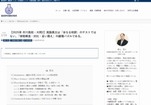 ▼ 【完全版】元記事はこちら 【2025年 市川高校・大問2】英語長文は「単なる和訳」のテストではない。「情報構造・対比・言い換え」の論理パズルである。 当塾が運営する分析サイト「習志野受験研究所」にて公開した最新の入試...