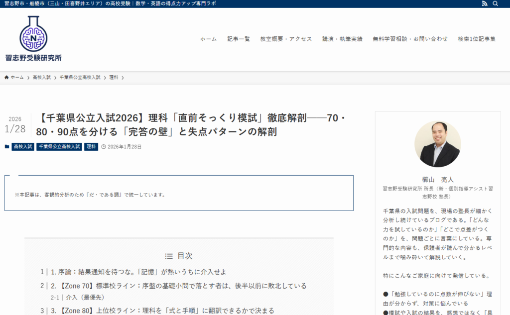 当塾の分析部門である「習志野受験研究所」では、2026年1月実施、理科の公立入試直前そっくり模試を詳細に分析しました。理科は、正しく課題を特定し、適切な練習を積めば、直前期でも大きく得点を伸ばせる科目です。