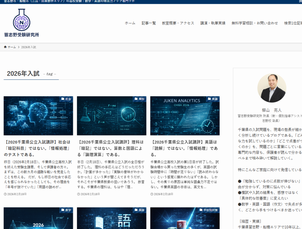 当塾が運営する千葉県入試の専門分析サイト『習志野受験研究所』にて、2026年度入試・全5教科(国語・数学・英語・理科・社会)の分析レポートがすべて出揃いましたのでお知らせいたします。