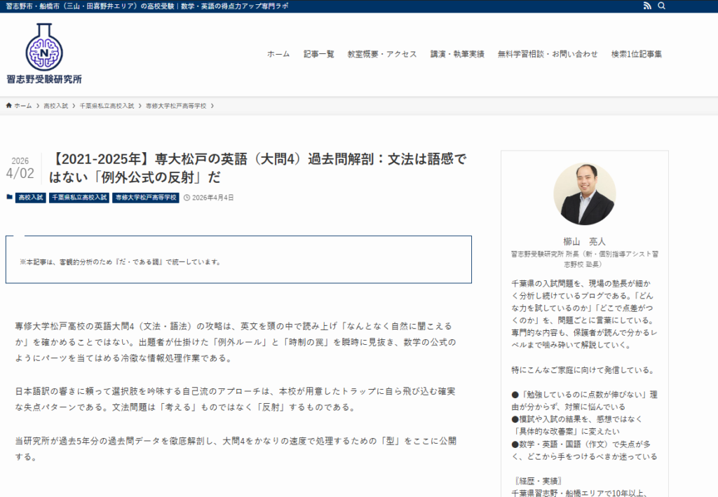 【2021-2025年】専大松戸の英語(大問4)過去問解剖:文法は語感ではない「例外公式の反射」だ