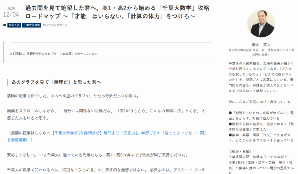 ▼過去問を見て絶望した君へ。高1・高2から始める「千葉大数学」攻略ロードマップ 〜「才能」はいらない。「計算の体力」をつけろ〜
