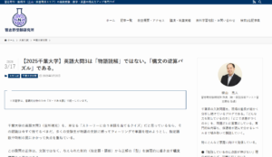 ▼ 【完全版】元記事はこちら 【2025千葉大学】英語大問3は「物語読解」ではない。「構文の逆算パズル」である。 新・個別指導アシスト習志野校です。 当塾が運営する習志野受験研究所にて、2025年度「千葉大学 英語大問3...